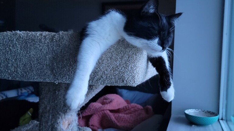 Two-year-old Luna is a tuxedo coloured bundle of joy. Her guardian, Janelle, describes her as sweet, playful, and full of energy, always cuddling close or snoozing in the cutest positions.